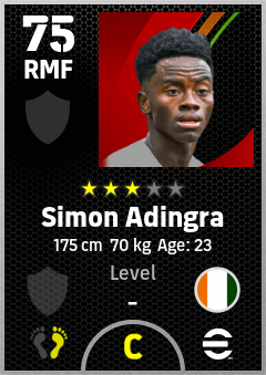 . Simon Adingra is a Right Midfielder footballer from Côte D'ivoire who plays for Free in eFootball 2026.