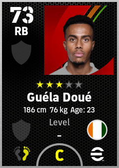 . Guéla Doué is a Right Back footballer from Côte D'ivoire who plays for Free in eFootball 2026.