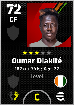 . Oumar Diakité is a Center Forward footballer from Côte D'ivoire who plays for Free in eFootball 2026.