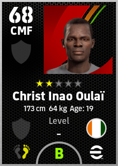 . Christ Inao Oulaï is a Center Midfielder footballer from Côte D'ivoire who plays for Free in eFootball 2026.
