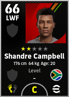 . Shandre Campbell is a Left Wing Forward footballer from South Africa who plays for Free in eFootball 2026.