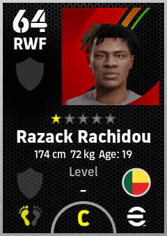 . Razack Rachidou is a Right Wing Forward footballer from Benin who plays for Free in eFootball 2026.
