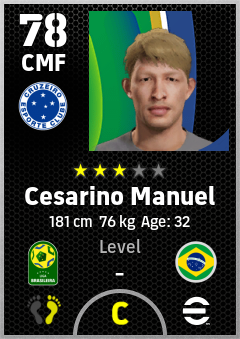 . Cesarino Manuel is a Center Midfielder footballer from Brazil who plays for Cruzeiro Ec in eFootball 2026.