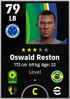 . Oswald Reston is a Left Back footballer from Brazil who plays for Cruzeiro Ec in eFootball 2026.