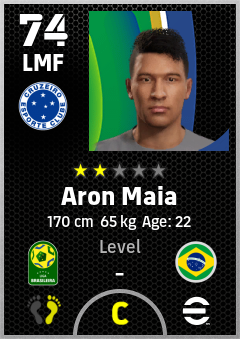 . Aron Maia is a Left Midfielder footballer from Brazil who plays for Cruzeiro Ec in eFootball 2026.