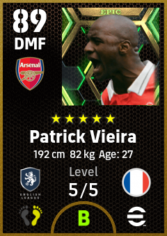 . Patrick Vieira is a Defensive Midfielder footballer from France who plays for Arsenal Fc in eFootball 2026.
