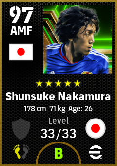 . Shunsuke Nakamura is a Attacking Midfielder footballer from Japan who plays for Japan in eFootball 2026.