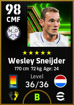 .Wesley Sneijder is a Center Midfielder footballer from Netherlands who plays for Madrid Chamartin B in eFootball 2026.
