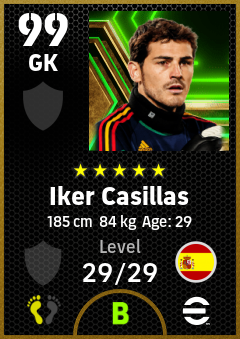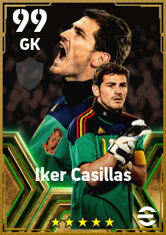 . Iker Casillas is a Goalkeeper footballer from Spain who plays for Free in eFootball 2026.