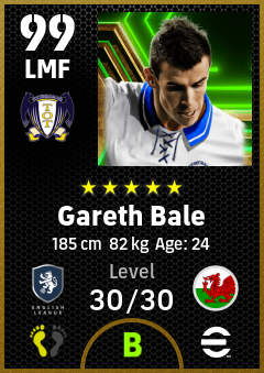 . Gareth Bale is a Left Midfielder footballer from Wales who plays for Tottenham Wb in eFootball 2026.