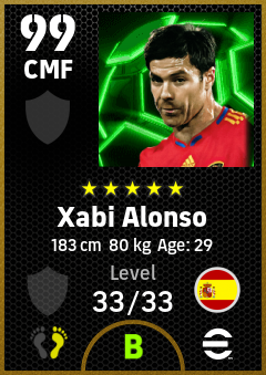 . Xabi Alonso is a Center Midfielder footballer from Spain who plays for Free in eFootball 2026.