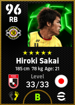 .Hiroki Sakai is a Right Back footballer from Japan who plays for Kashiwa Reysol in eFootball 2026.