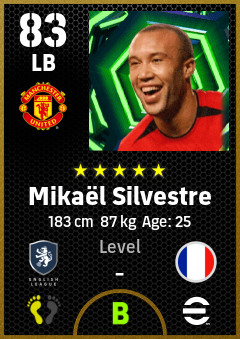 . Mikaël Silvestre is a Left Back footballer from France who plays for Manchester United in eFootball 2026.