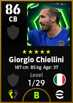 . Giorgio Chiellini is a Center Back footballer from Italy who plays for Free in eFootball 2026.