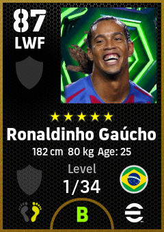 . Ronaldinho Gaúcho is a Left Wing Forward footballer from Brazil who plays for Free in eFootball 2026.