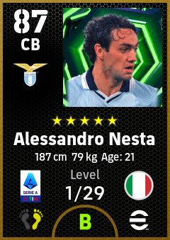 . Alessandro Nesta is a Center Back footballer from Italy who plays for S.s. Lazio in eFootball 2026.