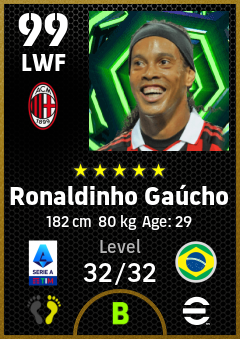 .Ronaldinho Gaúcho is a Left Wing Forward footballer from Brazil who plays for Ac Milan in eFootball 2026.