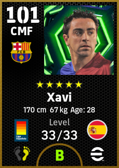 .Xavi is a Center Midfielder footballer from Spain who plays for Fc Barcelona in eFootball 2026.