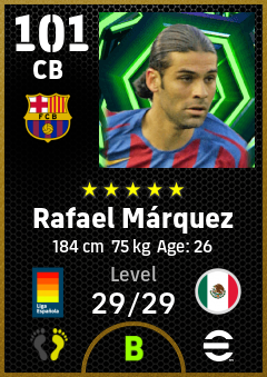 .Rafael Márquez is a Center Back footballer from Mexico who plays for Fc Barcelona in eFootball 2026.