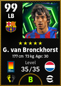 .G. Van Bronckhorst is a Left Back footballer from Netherlands who plays for Fc Barcelona in eFootball 2026.