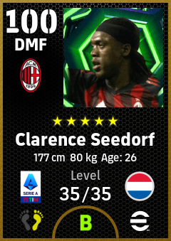 . Clarence Seedorf is a Defensive Midfielder footballer from Netherlands who plays for Ac Milan in eFootball 2026.