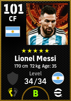 . Lionel Messi is a Center Forward footballer from Argentina who plays for Argentina in eFootball 2026.